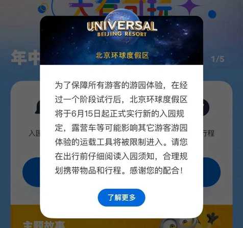 为了能够让游客们有更好的游园体体验,023年6月15日开始,北京的环球度假区也实施了新更改的入园规定,在入园溪之中提到基于各位旅客的安全,刀子剪子武器,危险化学品易爆品,易燃气体,气球,玩具枪,弹弓,弩等一系列物品是被禁止带入到北京环球度假区当中的