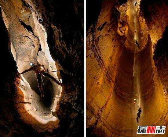 穿过甬道又要开始一段深达1500米以上的下降之旅,这无疑是一次巨大的挑战。想像一下,在比几个大厦还要深的地方,没有光为你指引道路,你会不会感到恐惧?