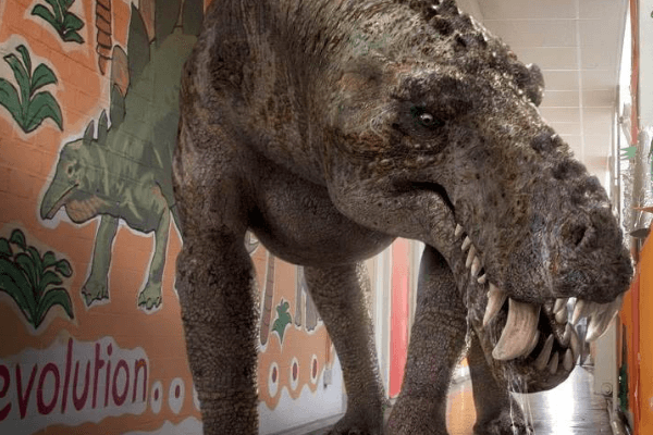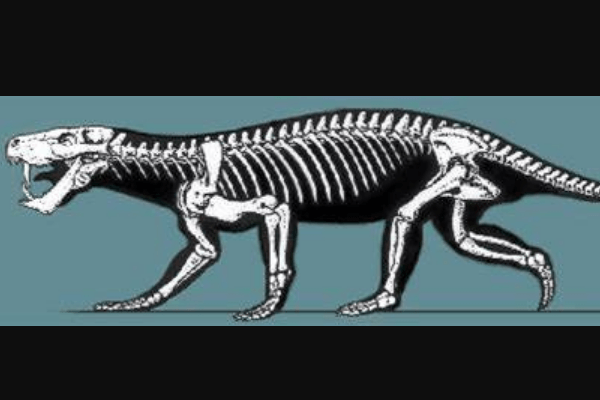 丽齿兽是一种兽孔目下的哺乳类爬行动物,诞生于2.52亿年前的二叠纪时期,体长普遍可以超过2.5米,其中颅骨就占到45厘米长,拥有着现代猎豹般的速度,每小时可以奔跑100公里,算是在恐龙诞生之前最强壮的一种顶级掠食者。
