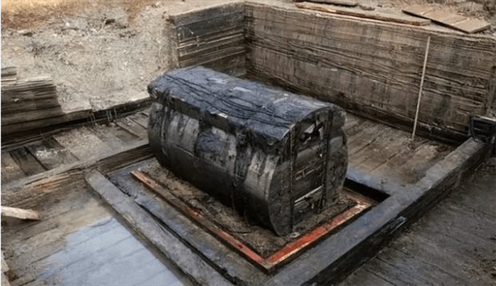 黑棺材里面埋葬在外战死的秦朝武将。在2016年,河南的某个城市因为破获了一起盗墓案件,也把一个古墓给带了出来当地的文物局是很快,对于这个墓穴进行挖掘,当他们挖出来之后发现这是一个保存比较完好的墓穴,甚至于连铺盖的草席都比较完好。不过在挖掘出来之后却发现里面埋葬的棺材是一个纯黑色的,这让专家们非常的惊奇,毕竟他们在之前也没有见到过穿黑色的棺材。