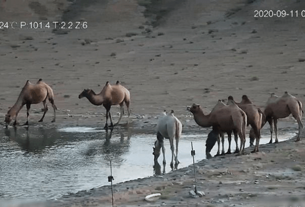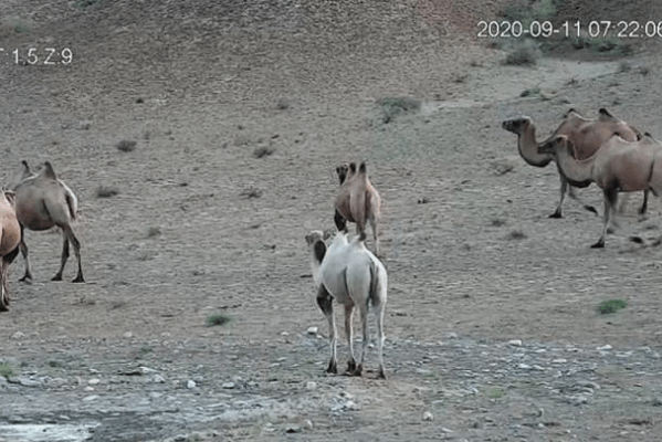 2020年9月11日上午7点26分左右,工作人员通过监测,在甘肃安南坝野骆驼国家级自然保护区发现了“白化”野骆驼的身影。据悉,这是保护区成立以来发现的首例“白化”骆驼。视频中显示,一群野骆驼在保护区黄羊沟野生动物饮水池附近饮水,这匹“白化”野骆驼就在其中。它在一群深褐色的正常骆驼中格外显眼。