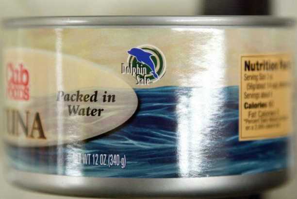 美国的金枪鱼罐头上面,每一个罐头上都会被贴上海豚的标志。个个标志并不是说里面装的是海豚的肉或者是有海豚的成分。只是提示大家在购买海金枪鱼的时候去想一想,你所吃的金枪鱼罐头会对海豚造成的伤害。