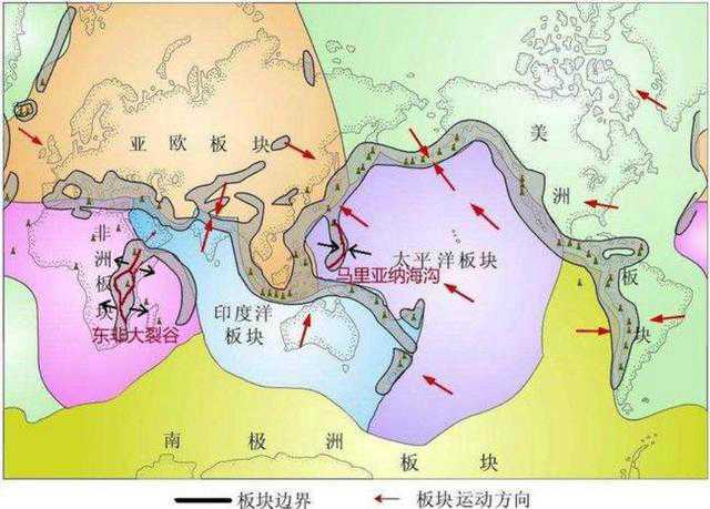 马里亚纳海沟的水压极高,因为海床越深,压力就会越大。 因为太深,没有阳光可以穿透,海底一片漆黑。 如果我们人类想要下到海底进行探测,就必须带上灯光,给潜艇配备足够的光源,否则海底就会像深空一样漆黑无边。 此外海底深处极冷,没有阳光的热量,所以水下环境非常恶劣,很多生物都难以在这里生存。这条海沟形成了几千万年,历史悠久,具有很强的科研价值。它是由地壳运动产生的,过去的大陆不是六大板块,而是一个完整的整体。 通过地球日月的不断变化,今天它分裂成不同的板块。 马里亚纳海沟是板块俯冲带,海底地质运动十分活跃。 此前,欧亚板块和太平洋板块剧烈碰撞,碰撞产生了一些洼地, 在挤压部分形成了凸起。