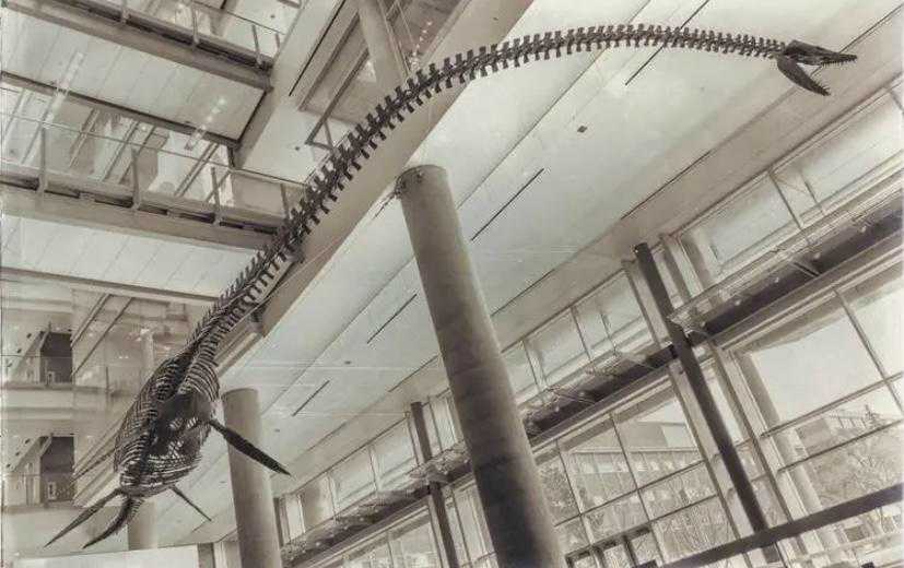 科学家们通过先进的科技手段,在一个受到过挤压的长颈龙头骨中,3D重建出了一个完整的立体头骨,更方便科研人员对其进行仔细的剖析和观察。人们发现长颈龙的头盖骨上有鼻孔,这一点和自然界中的鳄鱼非常相像,二者都是可以潜入水里,把鼻子露在水面上进行呼吸,猎物经过的时候,出其不意就可以将其捕获。