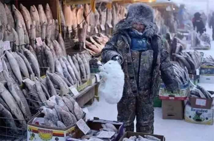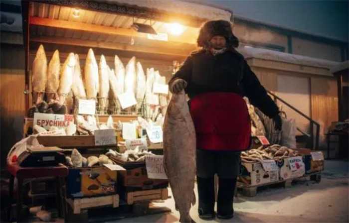 在西伯利亚的主要城市雅库茨克的市场上面有不少的食物售卖,不过大多数都是牛肉,鱼肉或者是鹿肉。这些都是比较高热量的食物,能够给人们提供比较充足的营养。我们中国人经常的猪肉,在当地也是非常受欢迎的一种肉类。而且这些肉类绝大多数都是被冷冻起来的,在野外冷冻就可以,不需要使用冰箱,这是他们的天然环境优势。