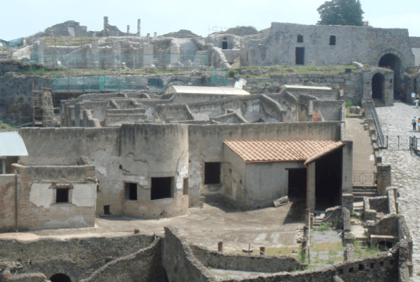 后来在1748年时有人挖掘出一些被火山灰包裹的遗骸,这时人们就发现地下可能是埋藏着一些重要的东西了,人们终于发现了在公元79年维苏威火山爆发所掩埋的一座城市,也就是庞贝古城,它是在亚平宁半岛西南角坎帕尼亚地区的一座古城,位于意大利南部的那不勒斯附近,在维苏威火山的东南处10千米处。