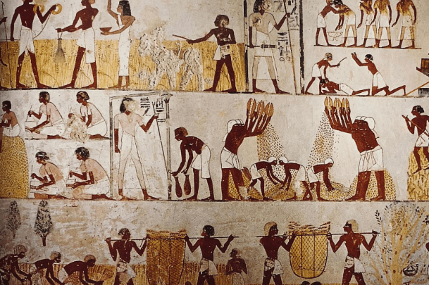 并且尼罗河每年都会河水泛滥,退水后会留下一层厚厚的淤泥,这些淤泥使得被淹没的地区十分肥沃,庄稼可以一年三熟,被当地人称为“尼罗河的赠礼”。因此,使得下游地区的农业发展起来,成为了古代著名的粮仓,农业发展起来后当地的经济急速发展,很快形成了贸易市场。在如此得天独厚的条件下,古埃及的文化发展得也更加迅速。