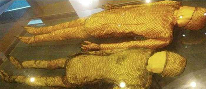 专家认为,在青石板所在的地方很可能是一座古墓,于是就在挖出青石板的地方挖掘,果真发现了一座古墓。主墓中出土的一对恩爱夫妻的遗骸头枕金丝银枕,身穿银丝网络葬衣,面戴黄金面具,脚穿金花银靴,从头到脚都是典型的辽朝时期契丹皇族的独特葬服。女尸颈上还戴着琥珀珍珠项链,手指上戴满金戒指,腕上带着两个金镯子。除此之外,墓中还出土了大量的金银、玉石、玛瑙、珍珠等珍贵陪葬品,数量多达3227件,墓室的壁画历经千年不褪色,可见墓主人生前身份高贵。
