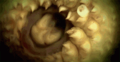 一旦北极七鳃鳗开始攻击目标就很难松口,不仅嘴上白森森的牙会全部扎进肉里,中间的活塞也会同时刺宿主。而且,当它们在宿主身上扎牢了往往会留在它身上几个小时到一天不等,不停地刮、凿,休息片刻以后接着刮、凿。