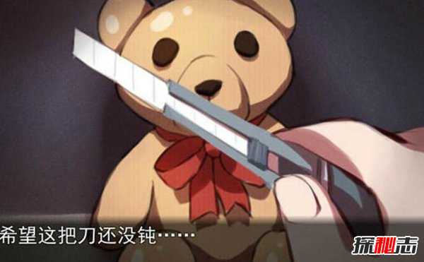 8、然后默念三次“接着你做鬼”,把刀拔去之后,留下布玩偶,离开浴室。