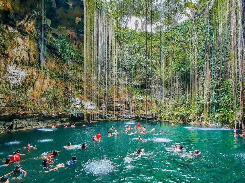 位置则是在墨西哥,整体看起来像是一直被玛雅人所声称的转世之门,一般十分的神秘也是给水域增添了许多的神秘色彩,有一些喜欢探险或者是充满好奇的人都会来到这所位置进行探索,有很多的藤条从上而下,垂着清泉流淌,时而有阳光照射进来时,水面十分的美丽,天空呈现出原状,直径达到60米,水深40米,引来很多人浮潜。