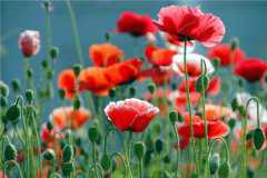 罂粟花一般在夏季开花,花朵形状非常漂亮,每株罂粟只开一朵花。罂粟花有许多种颜色,比如红色、粉色、蓝色、橙色等,据说不同的颜色有不同的花语。我们经常见到的罂粟花就是红色和粉色。花谢后,会结出球型蒴果,这些蒴果一般有鹌鹑蛋大小,成熟之后是褐色的。蒴果里面包裹着许多黑色的小颗粒,这些就是罂粟的种子。