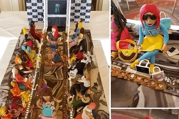 这款钻石蛋糕据说是为了庆祝一个阿拉伯富豪女儿的生日才制作的,整个蛋糕是以她喜欢的T台为主题,上面有将近20个姿态各异的模特和观众,拎着的都是名牌包,所以在这些人物上镶嵌了不少的钻石进行点缀,并且是由著名设计师温纳姆纯手工制作的,可以说是极度的奢华了,这可能也是这个蛋糕价值5亿的原因所在吧!