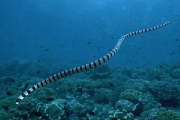 巨环海蛇一般都会成群的聚集在珊瑚丛周围,不管是觅食还是寻觅配偶,这里都是它们最熟悉的场所,它们的祖先其实是带有剧毒的陆生神经毒毒蛇,因此这也是它为什么能成为世界十大毒蛇的原因之一。虽然巨环海蛇的肺活量很大,但是它们平时还是习惯于15-20分钟就浮出水面换一次气。