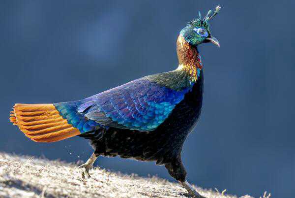 棕尾虹雉又被称为九色鸟,是一种大型鸟类,也是尼泊尔的国鸟,主要分布于阿富汗东部、巴基斯坦、克什米尔、尼泊尔、不丹、缅甸北部、中国西藏南部等等地区。它们的繁殖期是在4月到6月,雌鸟每窝大概会产3到8枚卵。棕尾虹雉会将巢穴建造在林下植被比较稀疏的森林之中,巢穴的建造比较简陋。