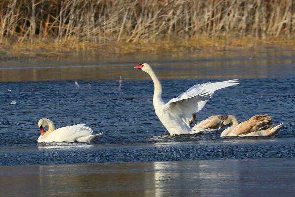 疣鼻天鹅:长达1.5米,叫声低沉嘶哑(活动时很少鸣叫)